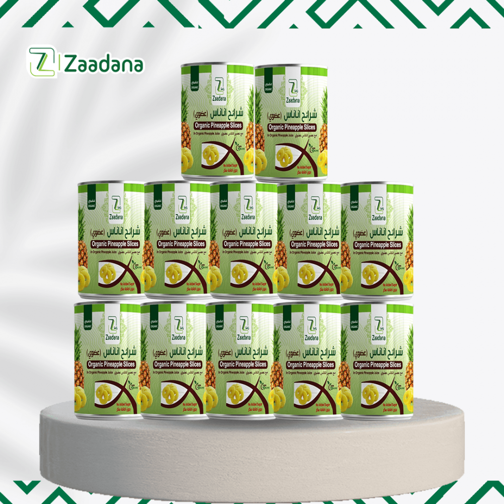 اناناس شرائح بكج من متجرنا زادنا بسعر مثالي يحتوي على 12 عبوة من الأناناس الشرائح عالي الجودة والعضوي والذي يحتوي على سعرات حرارية قليلة وقيمة غذائية كبيرة.